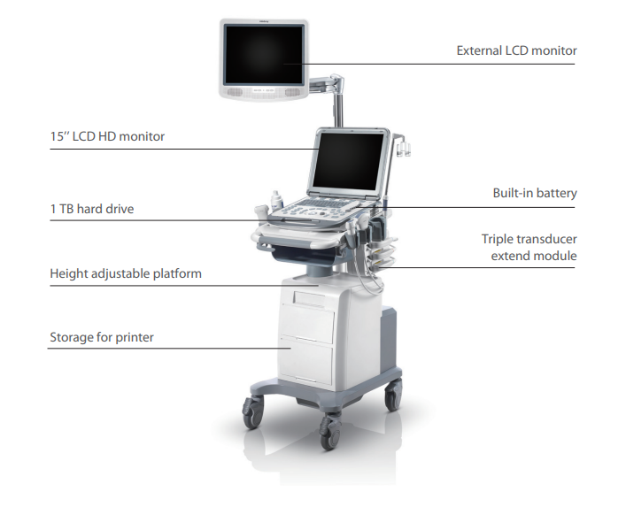 | Imaging Modes | B, M, Color, Power, PW, CW, TDI, Contrast, 3D/4D |